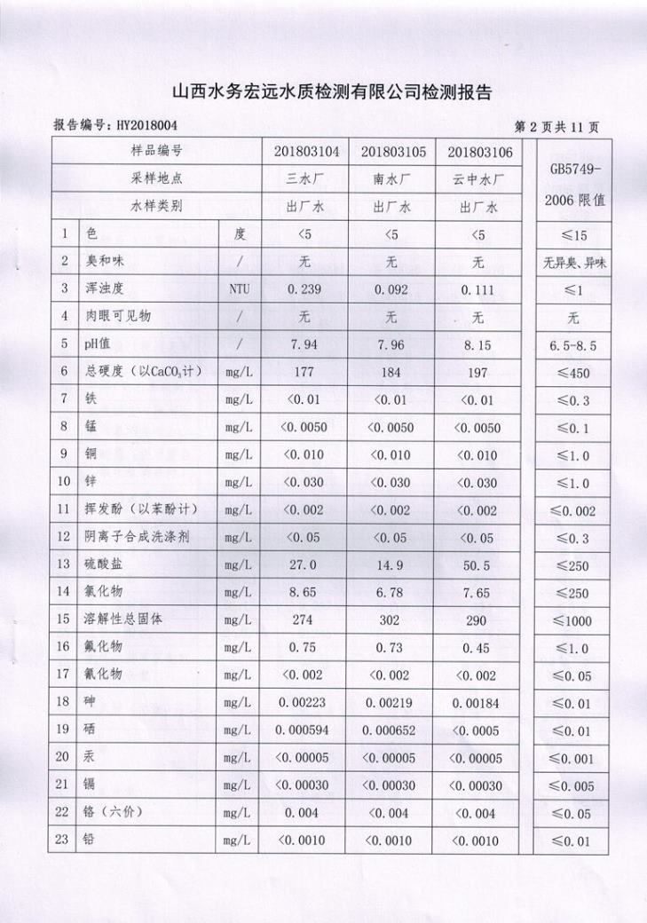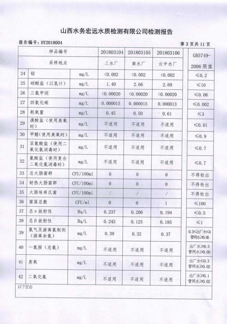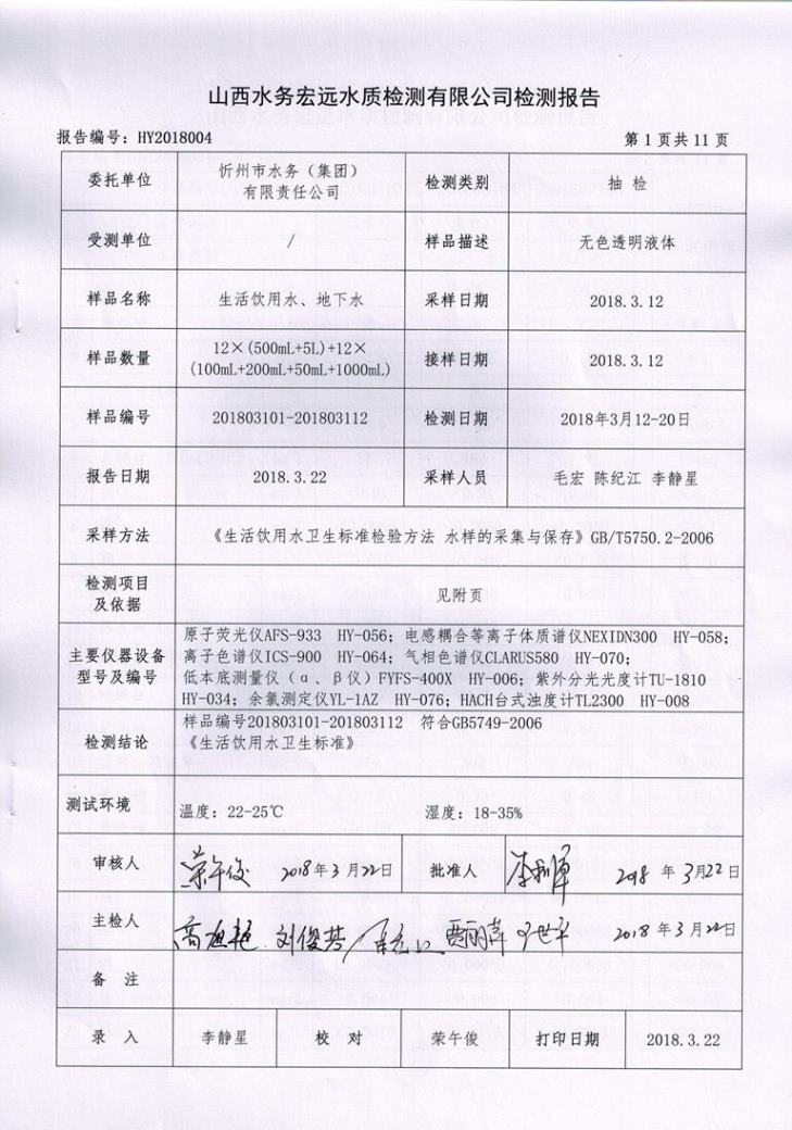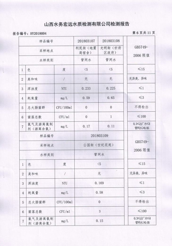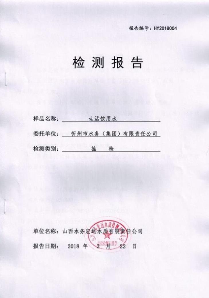 忻州城區(qū)公共供水水源水、出廠水、管網水、管網末梢水2018年3月份水質信息公示